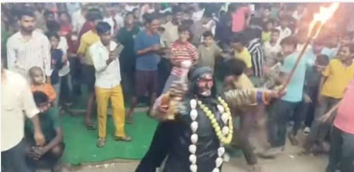 आर्यनगर में ताड़का वध की लीला का मंचन ।