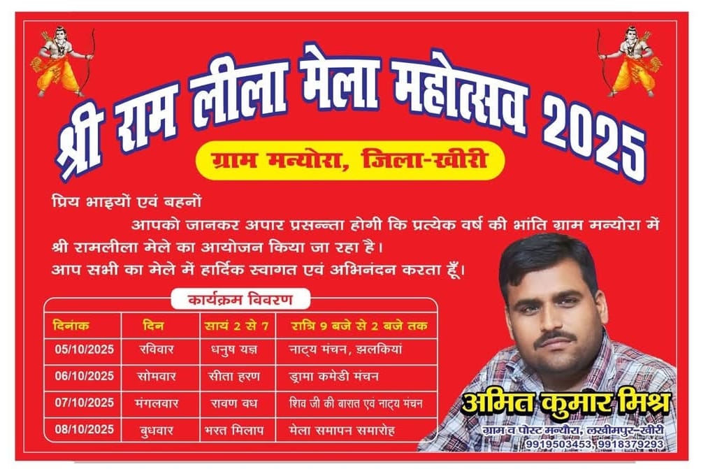 लखीमपुर खीरी जिले के फरधान थाना क्षेत्र के मन्यौरा में श्री रामलीला मेला का शुभारंभ आज से हो जाएगा, जिसको लेकर पूर्व से ही तैयारियां चल रही हैं।