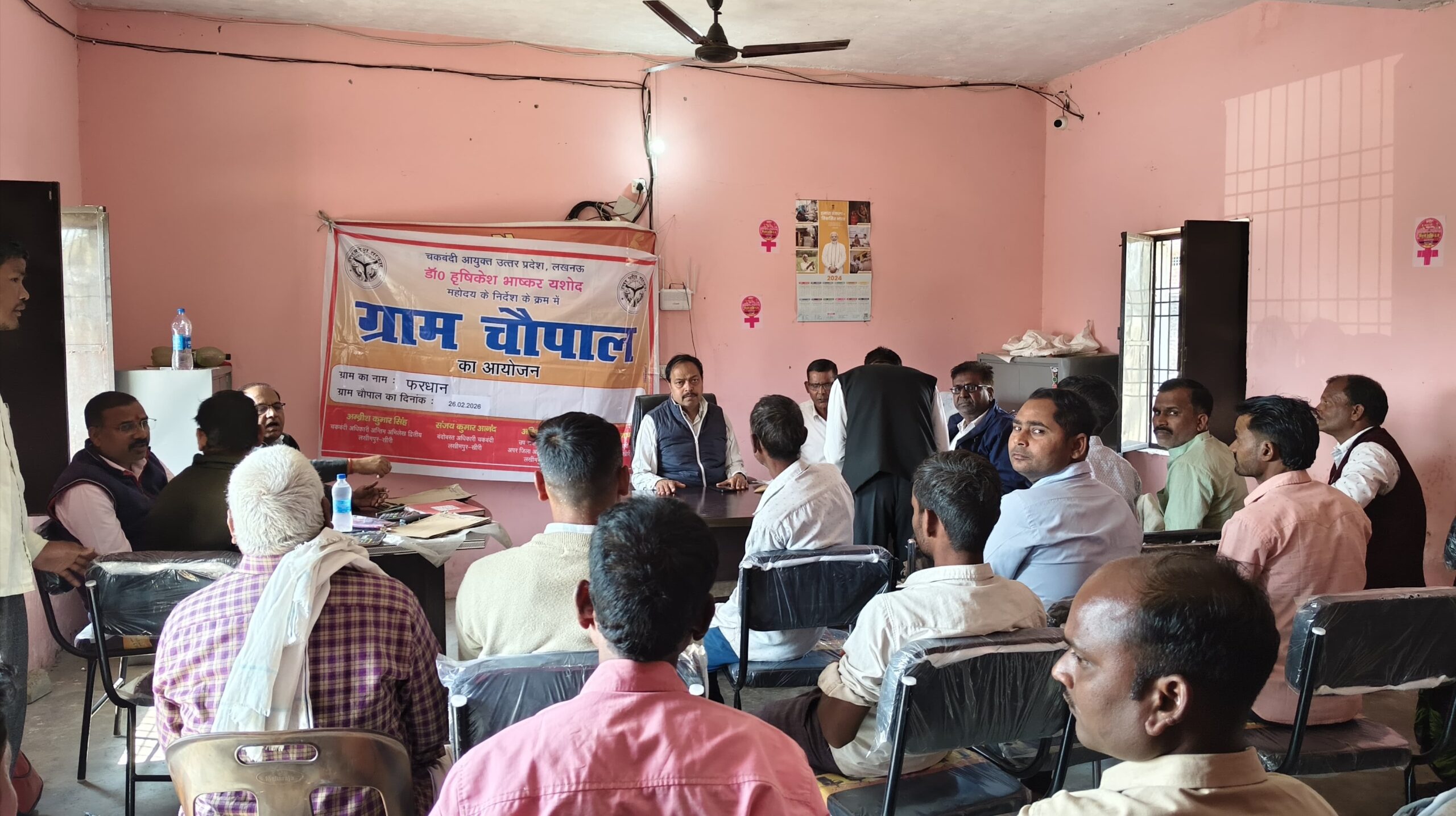 लखीमपुर खीरी। जिले में चकबंदी आयुक्त डॉ. हरिकेश भास्कर के निर्देश पर लखीमपुर ब्लॉक की ग्राम पंचायत फरधान में पंचायत भवन पर हुआ आयोजन। ग्राम चौपाल में ग्रामीणों की भारी भागीदारी देखने को मिली।कार्यक्रम का उद्देश्य चकबंदी से जुड़ी लंबित समस्याओं का मौके पर समाधान और ग्रामीणों से सीधा संवाद स्थापित करना रहा।